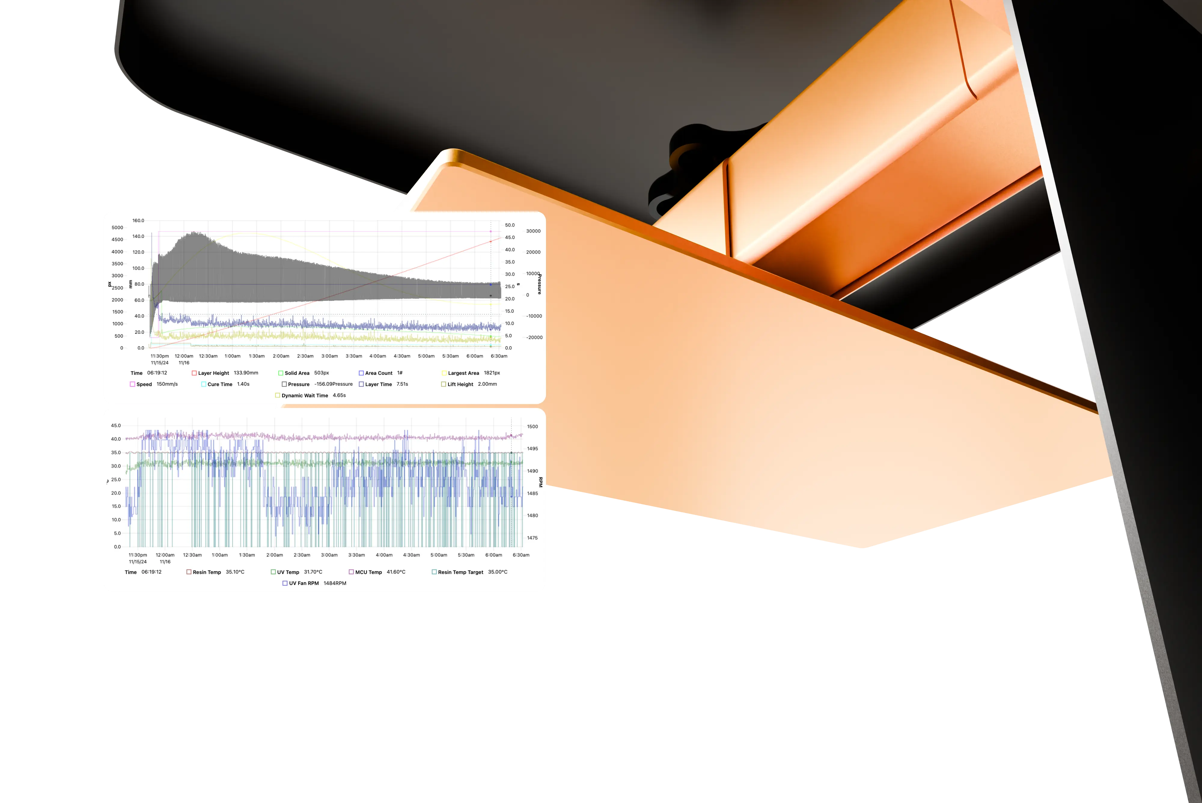 Sensors: Resin Temperature, Chamber Temperature, UVLED Temperature, Humidity, Dual VOC, Z axis Force, Resin Level